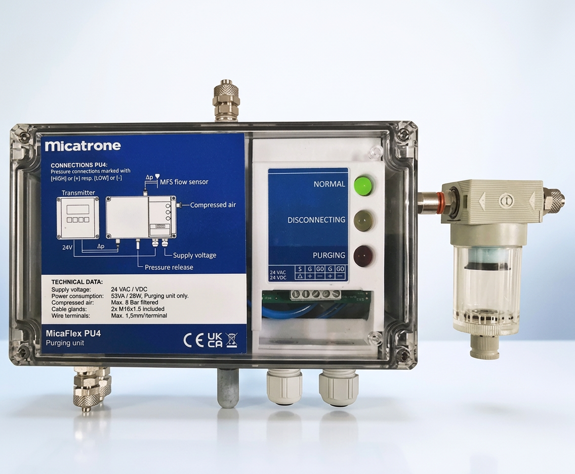 MFS-SS fångar differenstrycket mellan sondens p+ och p- sida. Ansluten till en givare ur Micaflex-serien kan flödet sedan beräknas och regleras.